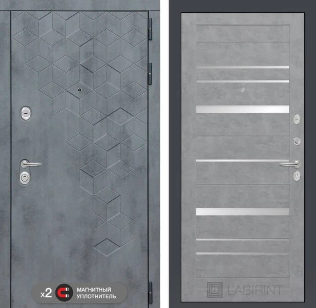 Дизайнерская входная Дверь Бетон класса Люкс с несколькими листами стали, звукоизоляцией и теплоизоляцией. Утепленный короб и полотно защитят от сквозняков и шумов. Модель не только надежная, комфортная, защищенная и высочайшего качества, но и очень красивая! Будет отлично сочетаться с интерьером дома, квартиры или офиса. Сейчас действует выгодное предложение по цене: 58 110 руб.